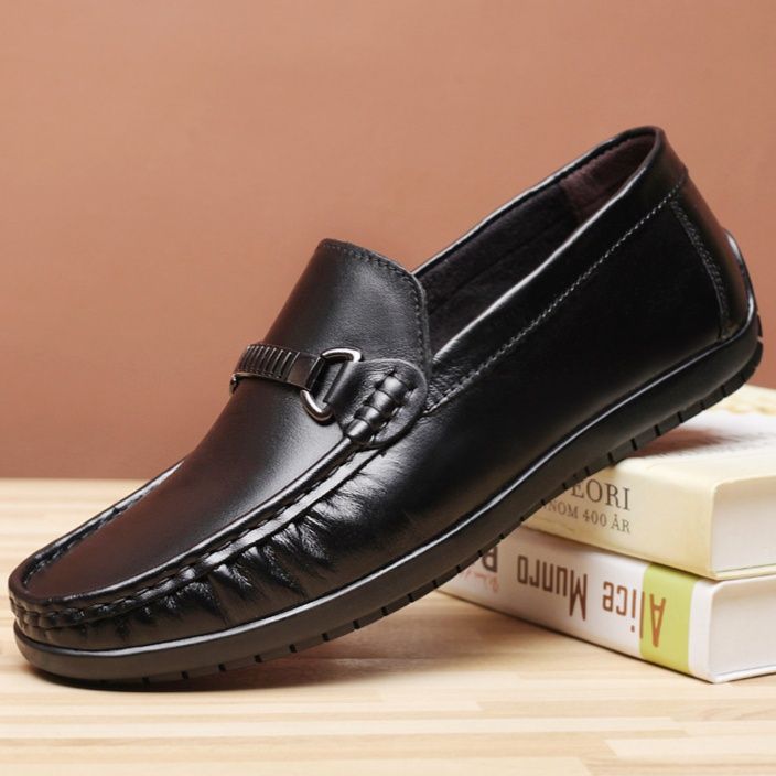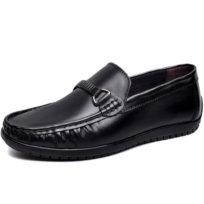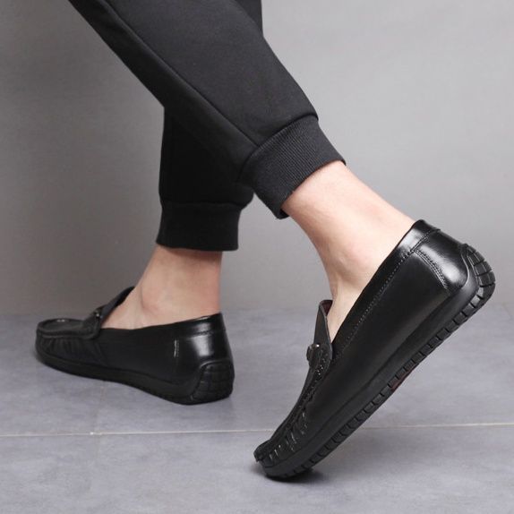 上質な本革を使用した高級感あふれるドライビングシューズです。 ローファータイプで脱ぎ履きしやすく、甲部分の金具がアクセントとなり洗練された印象を演出します。 アウトソールには凹凸のあるラバー素材を採用し、優れたグリップ力と柔軟性を実現しました。 軽量で足馴染みが良く、長時間の運転や日常使いにも快適な履き心地を提供します。 ビジネスシーンからカジュアルまで幅広く対応できる万能な一足です。