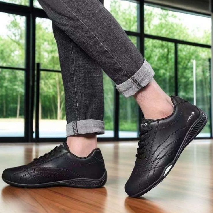 レーシングシーンに最適なドライビングシューズです。 厚手のクッション中敷きが足裏全体を優しく包み込み、長時間の運転でも疲れにくい設計になっています。 後方部分は補強設計で、かかとをしっかりと安定させることで正確なペダル操作を実現します。 通気性に優れた素材を使用し、快適な履き心地を保ちます。 スポーティなデザインと機能性を兼ね備えた本格派の一足です。