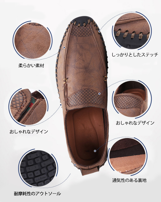 軽量で柔らかな履き心地の紳士用ローファーです。